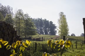 We hebben een domein van 6 a 7 hectare waar onze paarden in kudde op gehouden worden. Een heel wisselend terrein met veel verborgen plekjes en waar het ook mogelijk is echt alleen te kunnen zijn.